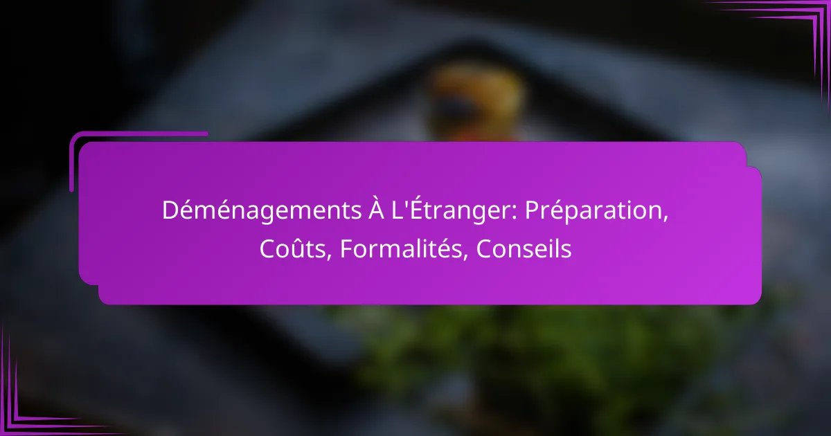 Pour préparer un déménagement à l’étranger, il est essentiel de planifier soigneusement chaque étape, en tenant compte des besoins personnels et des exigences spécifiques au pays de destination. Une bonne préparation peut réduire le stress et les coûts associés à ce processus complexe.