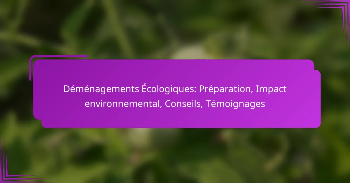 Les témoignages sur les déménagements écologiques révèlent une satisfaction croissante parmi les clients qui ont choisi des options respectueuses de l’environnement. Ces expériences mettent en lumière les avantages pratiques et environnementaux de ces déménagements, ainsi que les défis rencontrés.