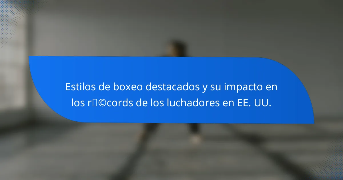 Los estilos de boxeo influyen significativamente en los récords de victorias y derrotas de los boxeadores en EE. UU. al dictar su enfoque, estrategia y efectividad en el ring. Diferentes estilos pueden llevar a niveles variados de éxito contra oponentes específicos, afectando el rendimiento general y la longevidad de la carrera.